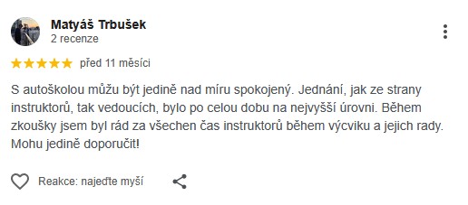 S autoškolou můžu být jedině nad míru spokojený. Jednání, jak ze strany instruktorů, tak vedoucích, bylo po celou dobu na nejvyšší úrovni. Během zkoušky jsem byl rád za všechen čas instruktorů během výcviku a jejich rady. Mohu jedině doporučit!